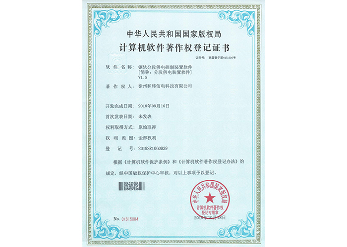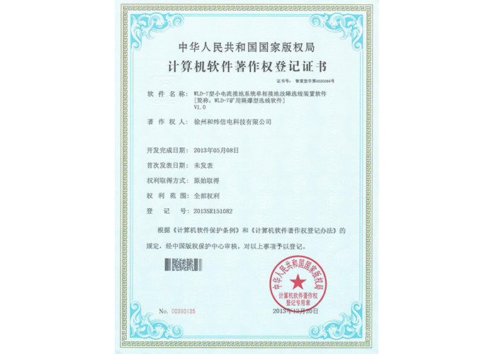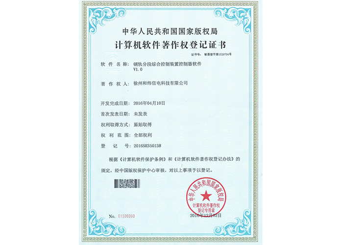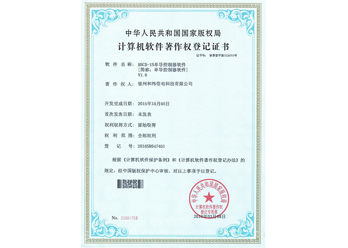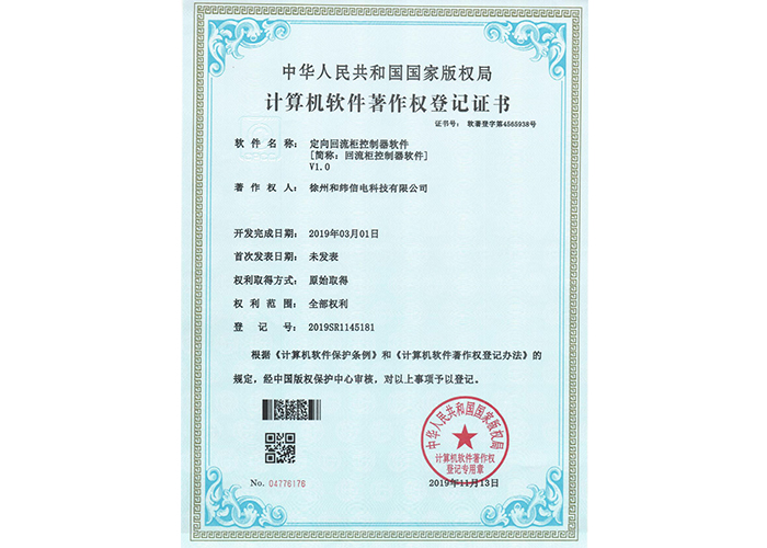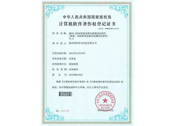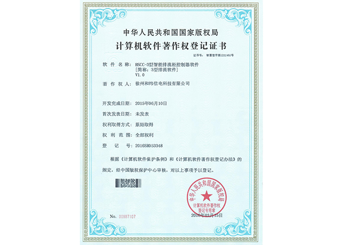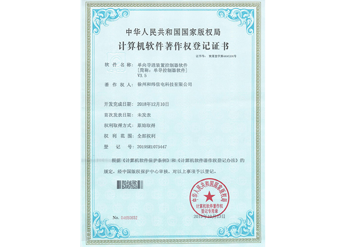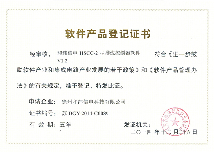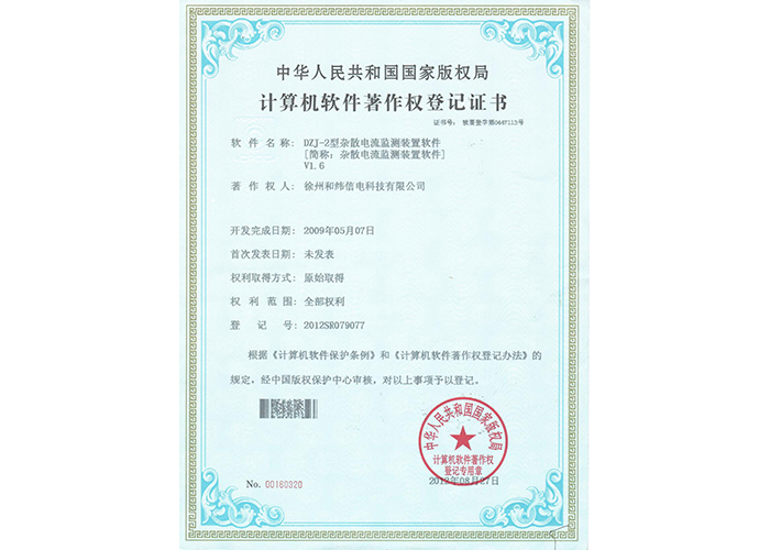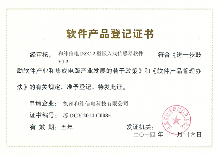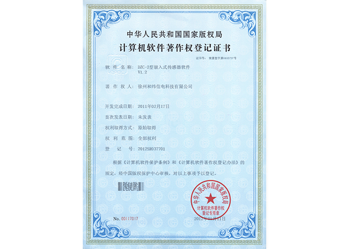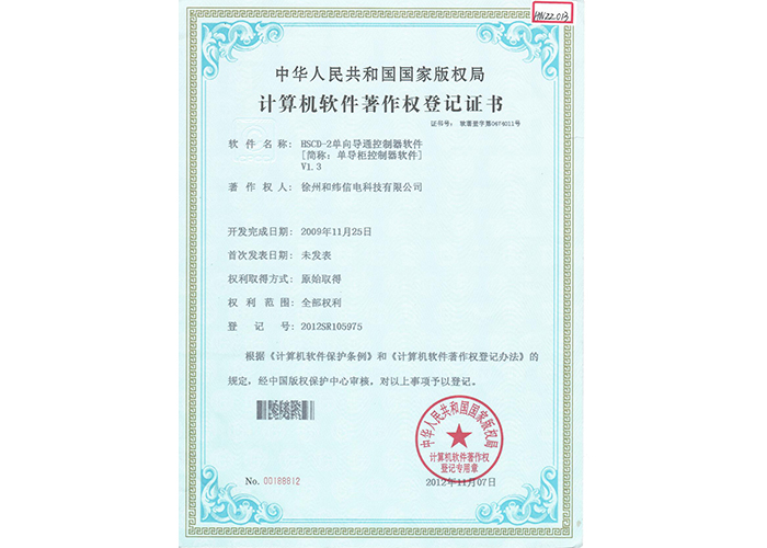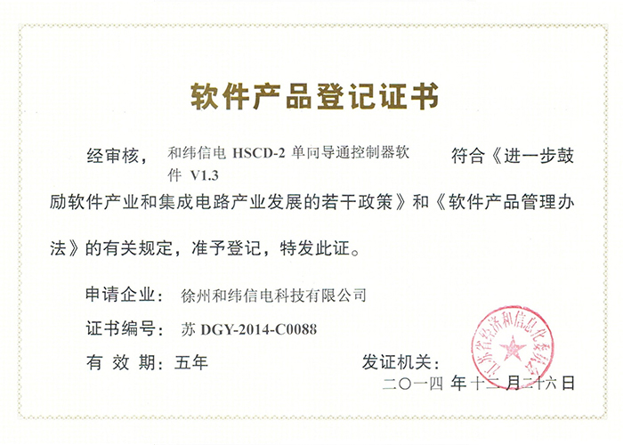 2012SR037701 DZC-2型嵌入式傳感器軟件V1.2 10軟件產(chǎn)品登記證書——和緯信電HSCC-2型排流控制器軟件V1.2 10軟件產(chǎn)品登記證書——和緯信電HSCD-2單向導通控制器軟件V1.3